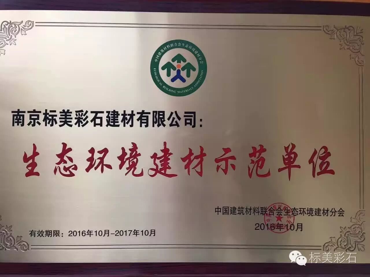 年初,国家住建部发布《海绵城市建设先进适用技术与产品目录》。标美的两项生态环保产品《彩色透水混凝土》和《透水沥青》获得殊荣,榜上有名。年底将至,“生态环境建材示范单位”的荣誉又眷顾标美。