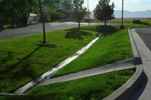 植草沟:用植被覆盖的集水、排水渠,主要用于疏散暴雨径流以及移除污染物,提升水质,保留乡土植被维护景观品质,提供生物栖息的空间,且植草沟设置及维持保养的费用低于传统的地下管线。