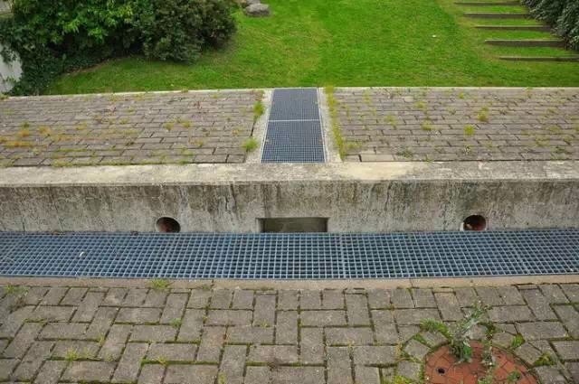 结合生态集水渠设计地下贮水沟,既是集水沟,也是贮水设施。贮存的水过滤后在重力作用下直接供给附近低标高厕所冲厕以及绿地灌溉,贮存沟内溢流出的雨水排入下游净化池中。