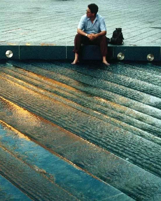 例如德国的柏林波茨坦广场(Potsdamer Platz),占总面积19%的用地被规划为水面,可收纳周边屋面和地面的雨水约1.5万m3。雨水在注入广场水体之前,先要经过种植有水生植物和培养在上面的微生物构成的净化水塘,完成水的净化和二次过滤,保证水体有清洁健康的品质。