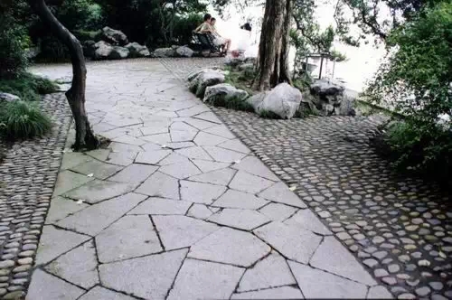 因景观和功能要求,在主要道路和广场上未使用透水砖。因道路广场的标高大于绿地标,道路广场上的雨水可以汇聚到周边绿地内,再渗透到地下。而园内一般道路采用透水砖,并以级配砂石作为垫层,在级配