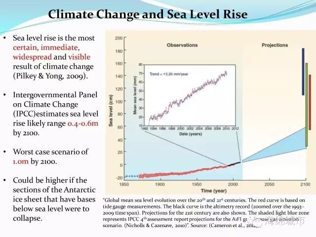我后面结合我在美国做的一些工作谈的一些内容,主要关注于海平面上升,从这一张图可以看出来,由于气候变化的影响,全球的海平面是在上升的。