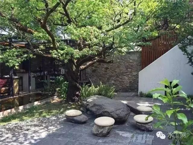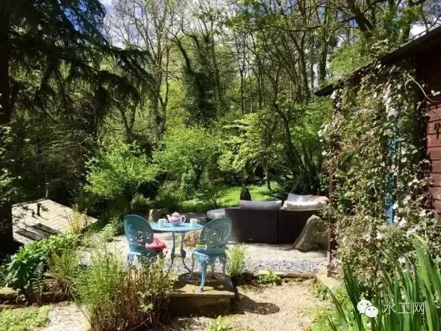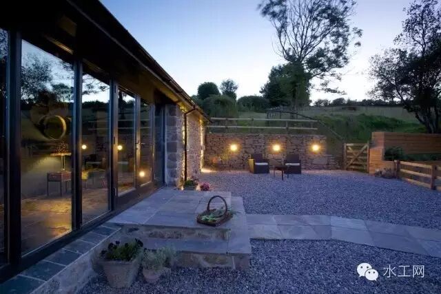 哪里庭院整洁,依山而建,碎石铺装,雨水过滤。。。。