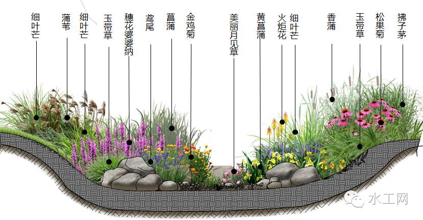 生态小道,砾石盲管道路,不积水,野草与道路,生态挡土墙与植被..