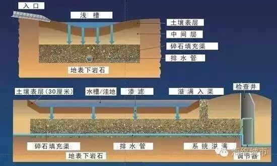 此外,德国近年来开始推广的“洼地——渗渠系统”使各个就地设置的洼地、渗渠等设施与带有孔洞的排水管道相连,形成了一个分散的雨水处理系统。低洼的草地能短期储存下渗的雨水,渗渠则能长期储存雨水,进一步减轻了排水管道的负担。